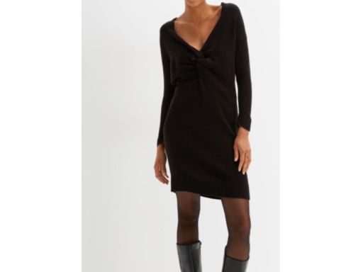 B.P.C sukienka dzianinowa czarna ze splotem dekoracyjnym ^48/50