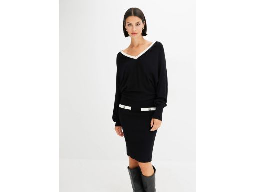B.P.C sukienka dzianinowa czarno-biała z guzikami r.36/38