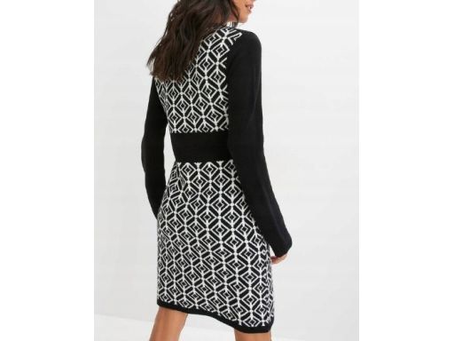 B.P.C sukienka dzianinowa czarno-biała ze wzorem r.44/46