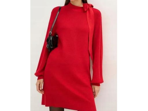 B.P.C sukienka dzianinowa czerwona z wiązaniem przy dekolcie r.52/54