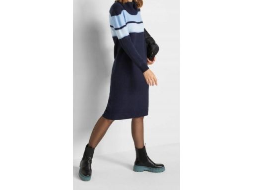 B.P.C sukienka dzianinowa granatowa z niebieskimi paskami 36/38.