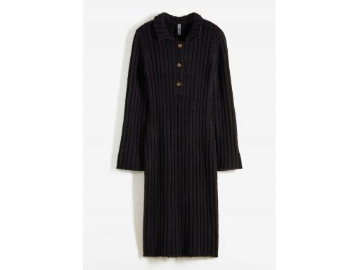 B.P.C sukienka dzianinowa midi czarna z kołnierzykiem i guzikami 36/38.