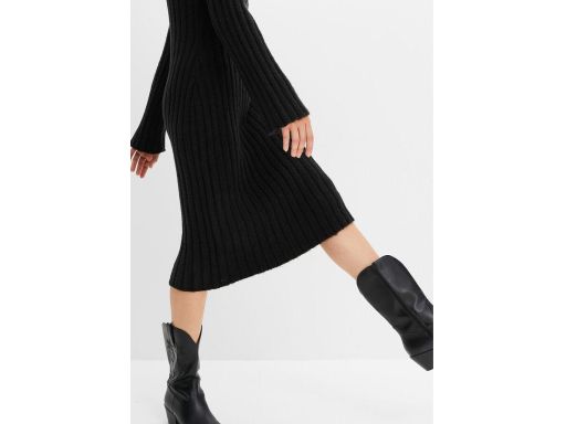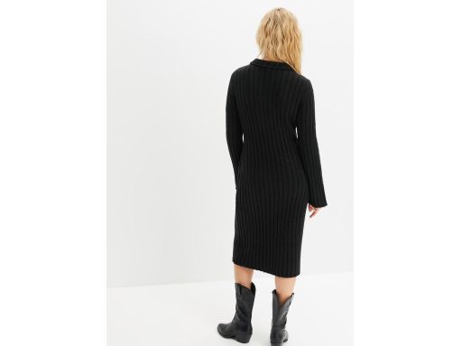B.P.C sukienka dzianinowa midi czarna z kołnierzykiem i guzikami 36/38