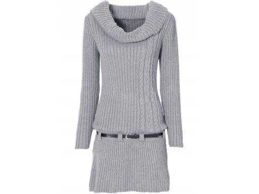 B.P.C sukienka dzianinowa szara z paskiem ^44/46