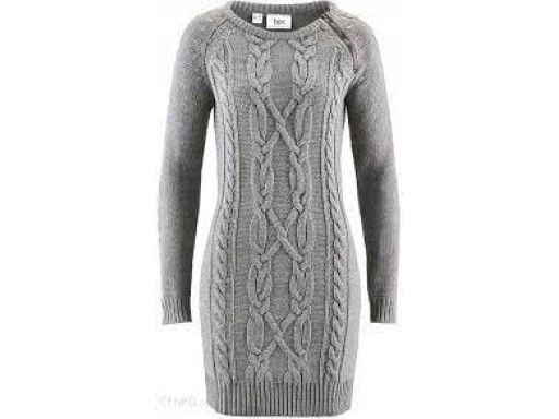 B.P.C sukienka dzianinowa szara z warkoczem 32/34.