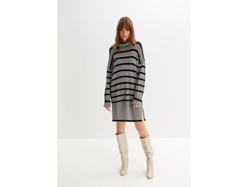 B.P.C sukienka dzianinowa szaro-czarna z golfem miękka cienka ^40/42