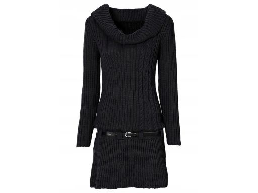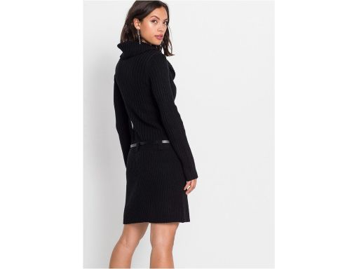 B.P.C sukienka dzianinowa z szerokim kołnierzem i paskiem czarna ^36/3