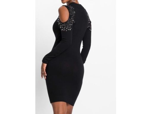 B.P.C sukienka dzianinowa z wycięciami i koronką ołówkowa ^32/34