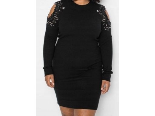 B.P.C sukienka dzianinowa z wycięciami i koronką ołówkowa ^36/38