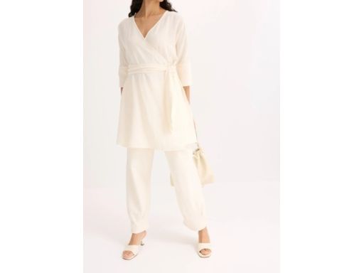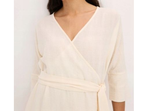 B.P.C sukienka ecru z efektem założenia kopertowego 40.