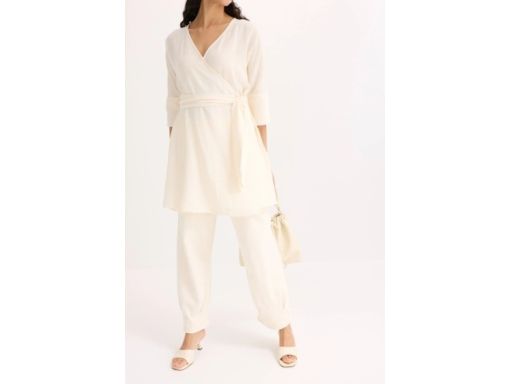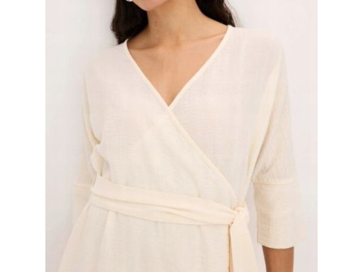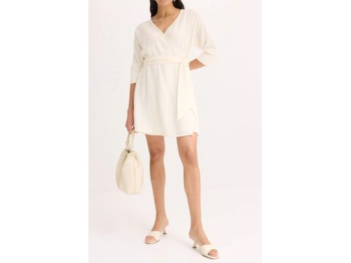 B.P.C sukienka ecru z efektem założenia kopertowego r.48