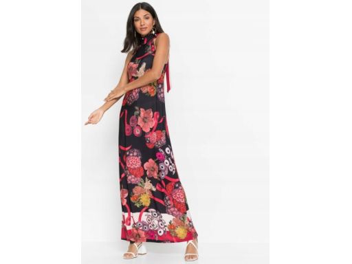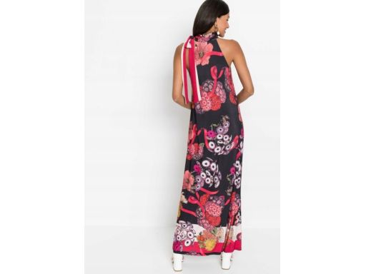 B.P.C sukienka elegancka długa nadruk wiązanie przy szyi 36/38.