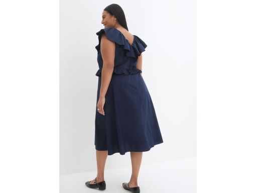 B.P.C sukienka granatowa midi z falbanką 38.