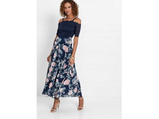B.P.C sukienka granatowa z koronką i dołem w kwiaty 42.