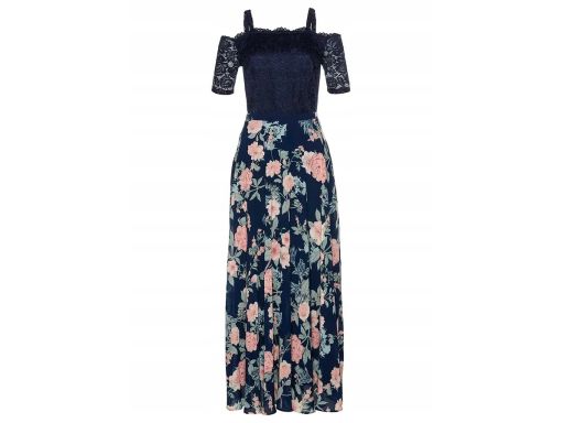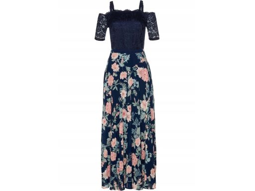 B.P.C sukienka granatowa z koronką i dołem w kwiaty42.