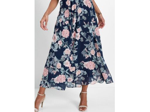 - dół granatowy, szyfonowy w kolorowe kwiaty
