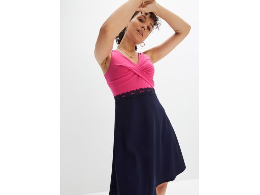 B.P.C sukienka granatowo-różowa z koronką 52/54.