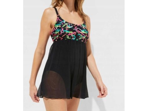 B.P.C sukienka kąpielowa siateczkowa czarna wielokolorową wstawką r.50