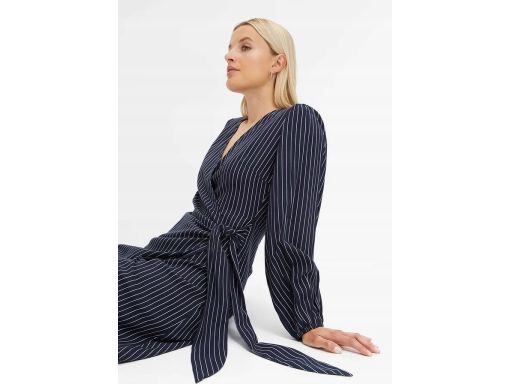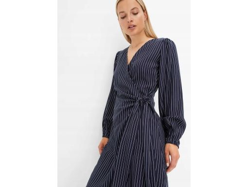 B.P.C sukienka kopertowa granatowa z białe paseczki 44.