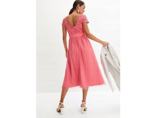 B.P.C sukienka koralowa z koronką r.40