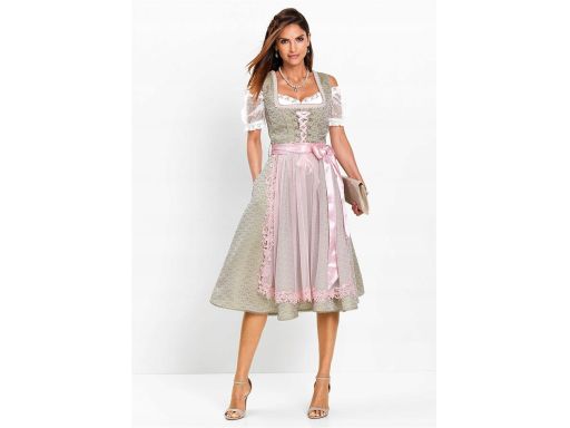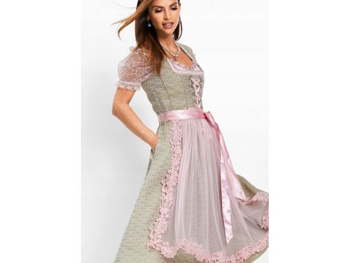 B.P.C. sukienka ludowa midi z rożowym fartuszkiem ^46