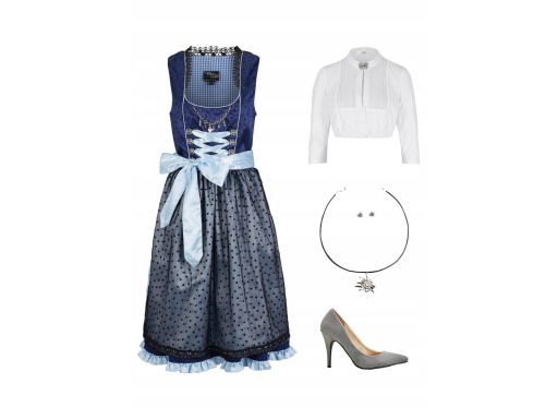 - z przodu czarny siateczkowy fartuch w serduszka z szeroką szarfą