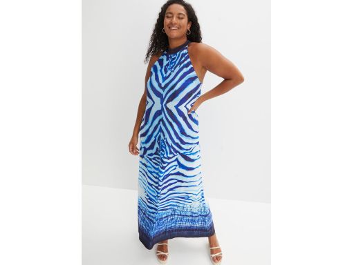B.P.C sukienka maxi z dekoltem halter niebieska ^40/42