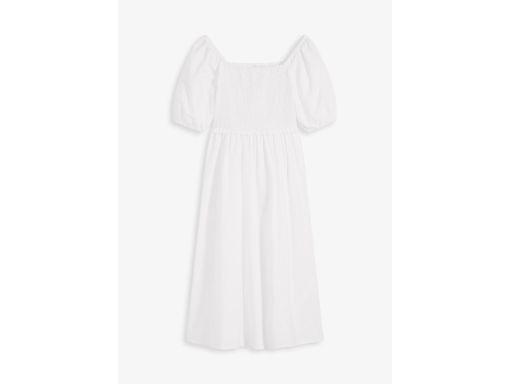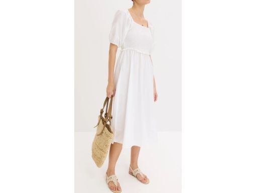 B.P.C sukienka midi biała bawełniana z marszczeniem r.44
