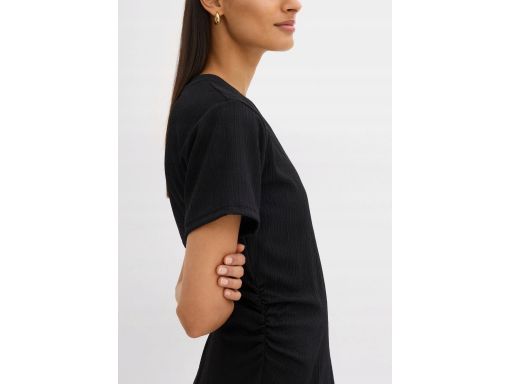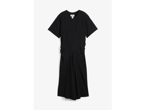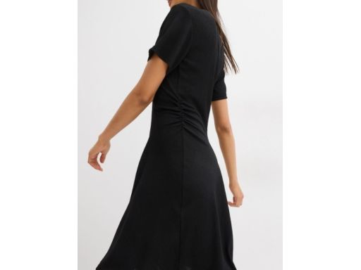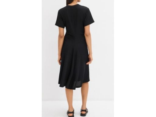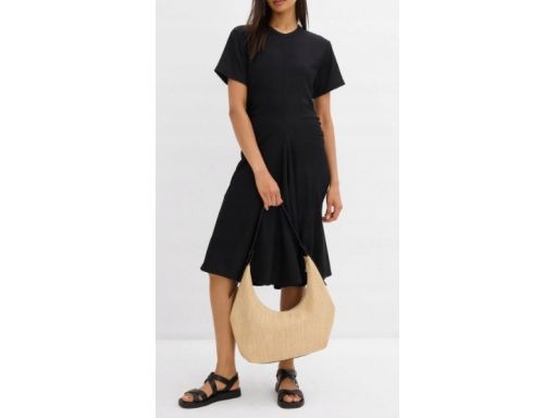 B.P.C sukienka midi czarna krepowana z marszczeniem 44/46.