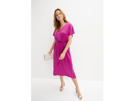 B.P.C sukienka midi fiolet orchidei satynowa z wiązaniem r.44