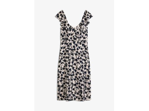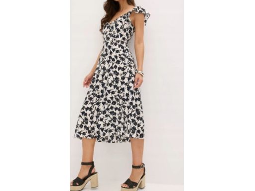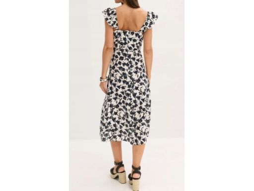 B.P.C sukienka midi letnia biała w czarno-niebieskie kwiaty r.40