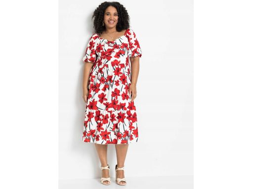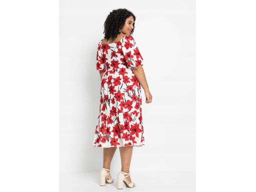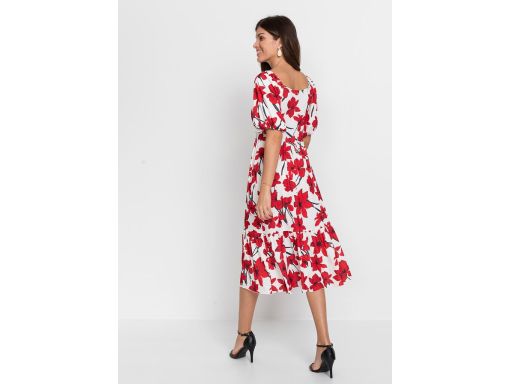 AG6427 sukienka midi w czerwone kwiaty 36/38.