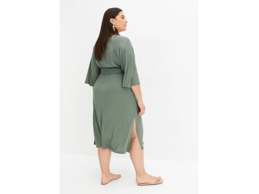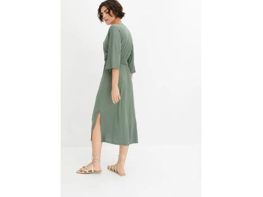 B.P.C sukienka midi z koronką ażurową oliwkowa r.44/46
