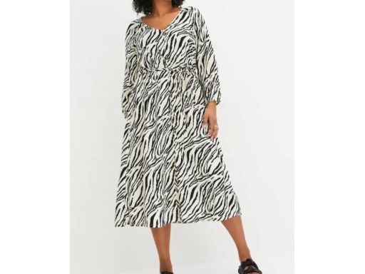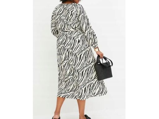 B.P.C sukienka midi zielona khaki w czarny wzór zebry ^38