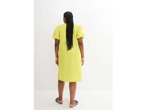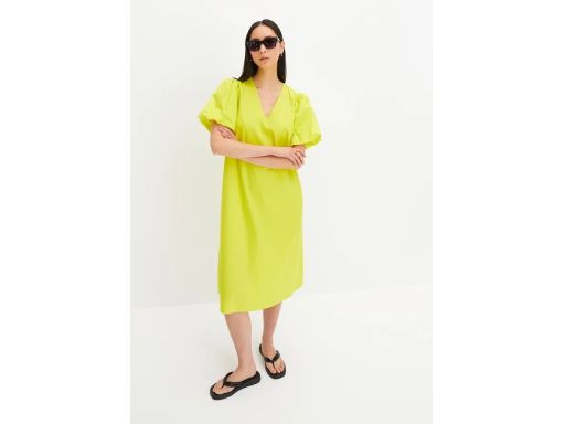 B.P.C sukienka midi zielona limonka bufiaste rękawy 52.