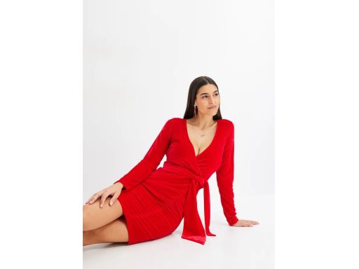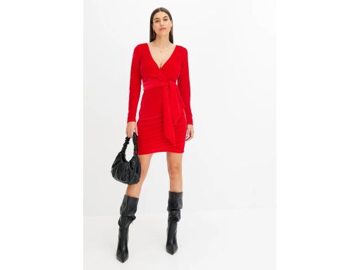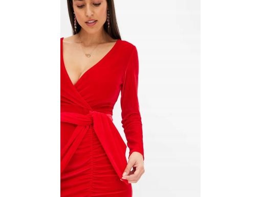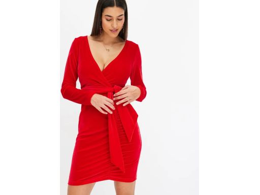 B.P.C sukienka mini aksamitna czerwona z marszczeniem ^44//46