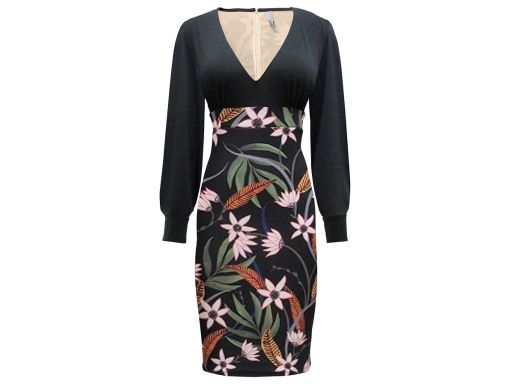 - góra czarna gładka, dół czarny w wielkolorowe kwiaty