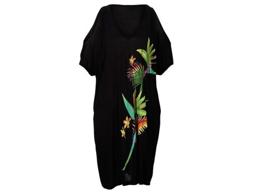 B.P.C sukienka plażowa czarna z kolorowym nadrukiem z wycięciami 36/38.