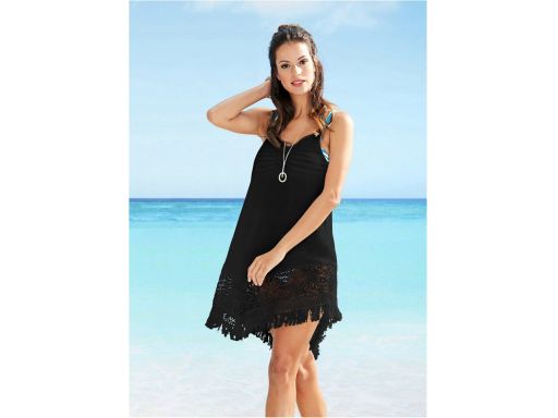 B.P.C sukienka plażowa czarna z koronką i frędzlami ^44