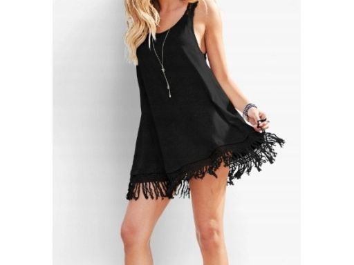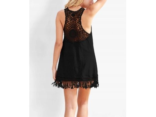 B.P.C sukienka plażowa czarna z koronką i frędzlami r.48