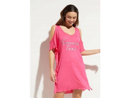 B.P.C sukienka plażowa różowa z nadrukiem z wycięciami 44/46.