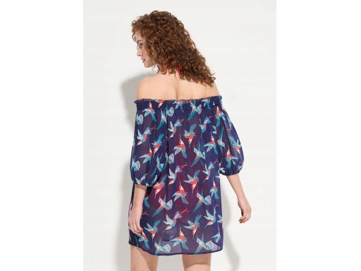 B.P.C sukienka plażowa szyfonowa granatowa w ptaszki r.56/58