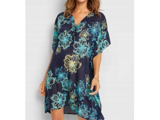 B.P.C sukienka plażowa tunika jasnoniebieska w kolorowe kwiaty ^44/46
