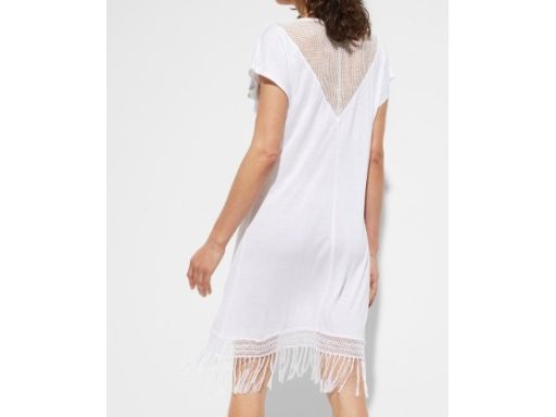 B.P.C sukienka plażowa biała z koronką i frędzlami r.38