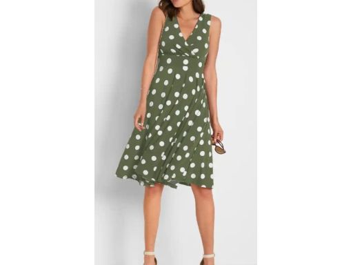 B.P.C sukienka rozkloszowana BIAŁA W CZARNE GROCHY ^52/54