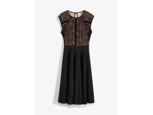 B.P.C sukienka rozkloszowana czarna z koronkową wstawką 32/34.