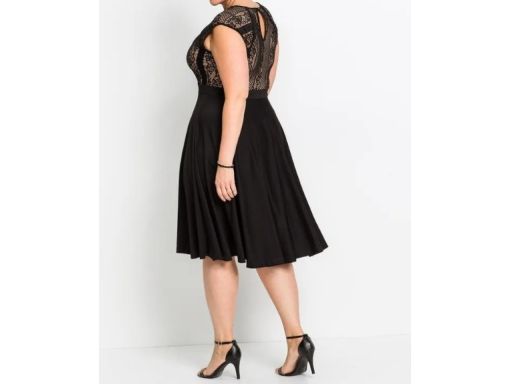 B.P.C sukienka rozkloszowana czarna z koronkową wstawką r.36/38