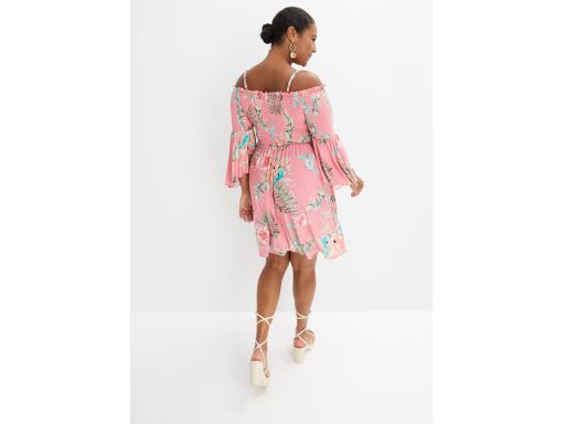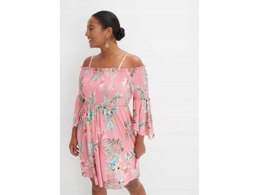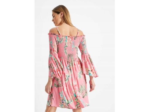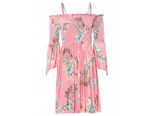 B.P.C. Sukienka różowaw kwiaty z odkrytymi ramionami ^36/38