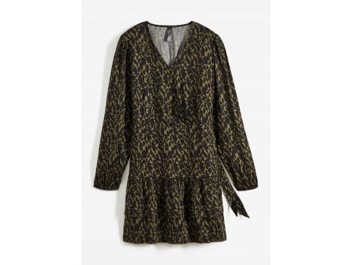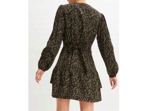 B.P.C sukienka satynowa czarno-khaki we wzory z wiskozy 48.