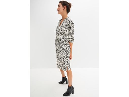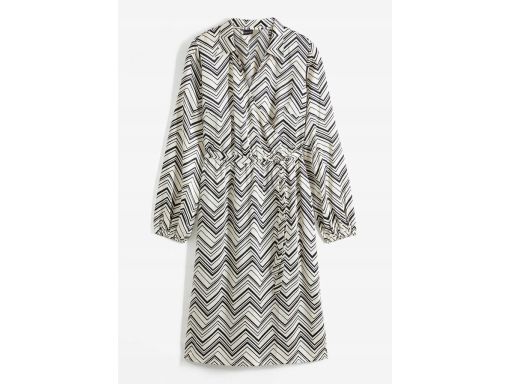 B.P.C sukienka satynowa śmietankowa w czarne wzory midi ^44